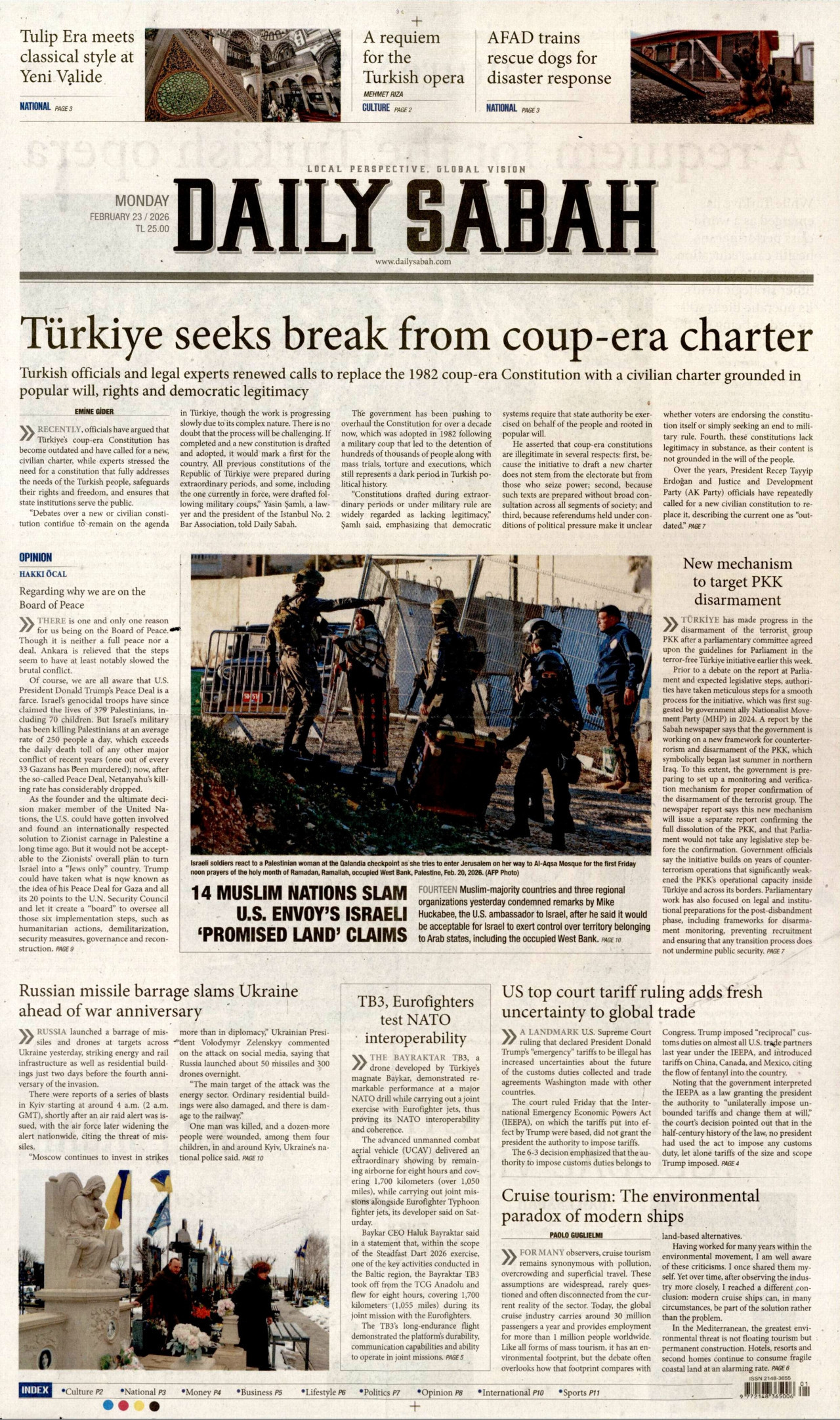DAİLY SABAH Gazetesi 22 Şubat 2026, Pazar Günü Manşeti
