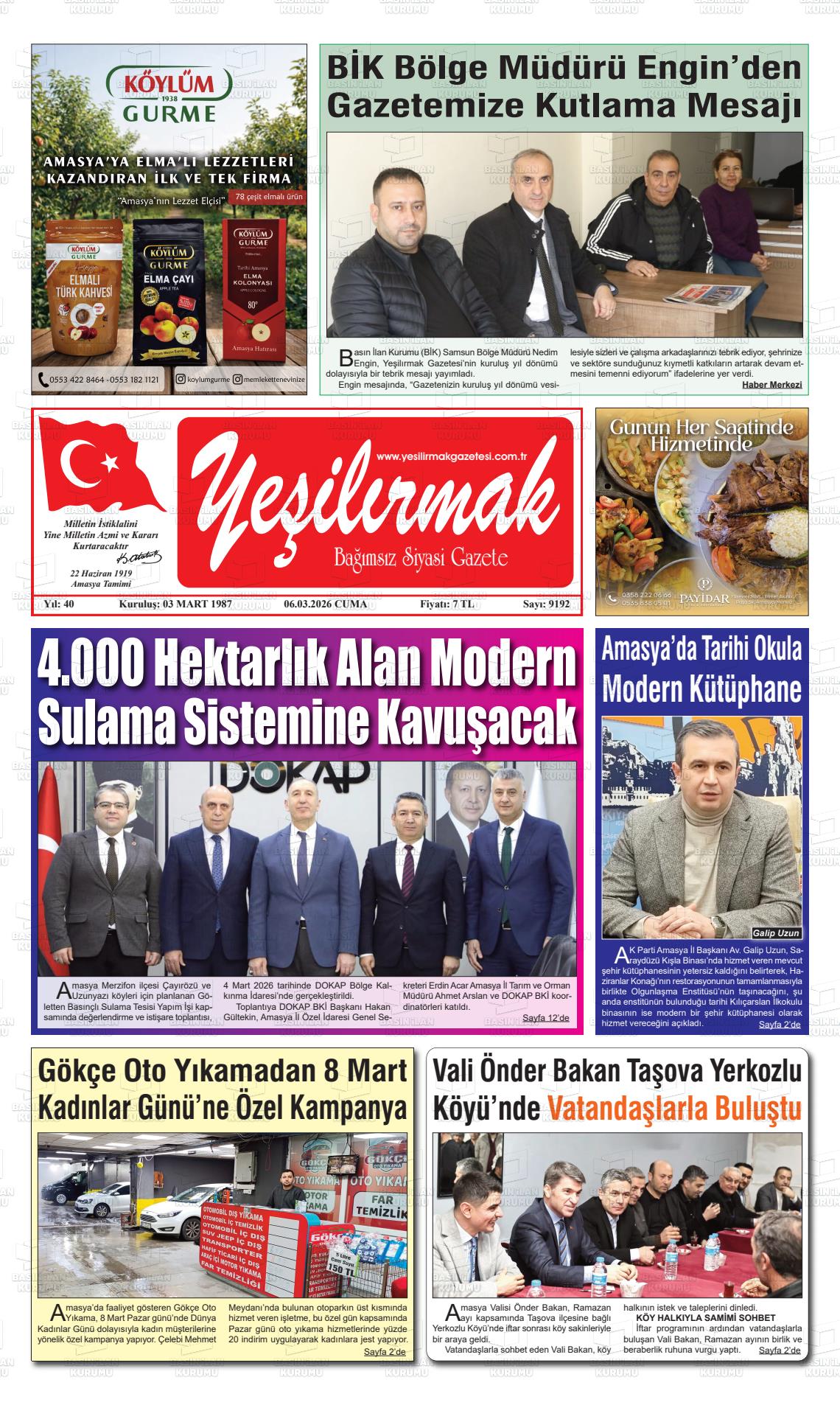 Amasya Yerel Gazeteleri 07 Mart 2026, Cumartesi Günü Manşeti