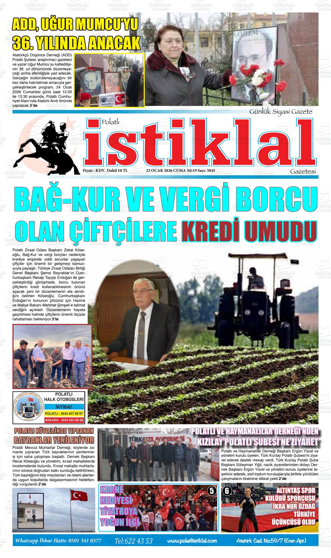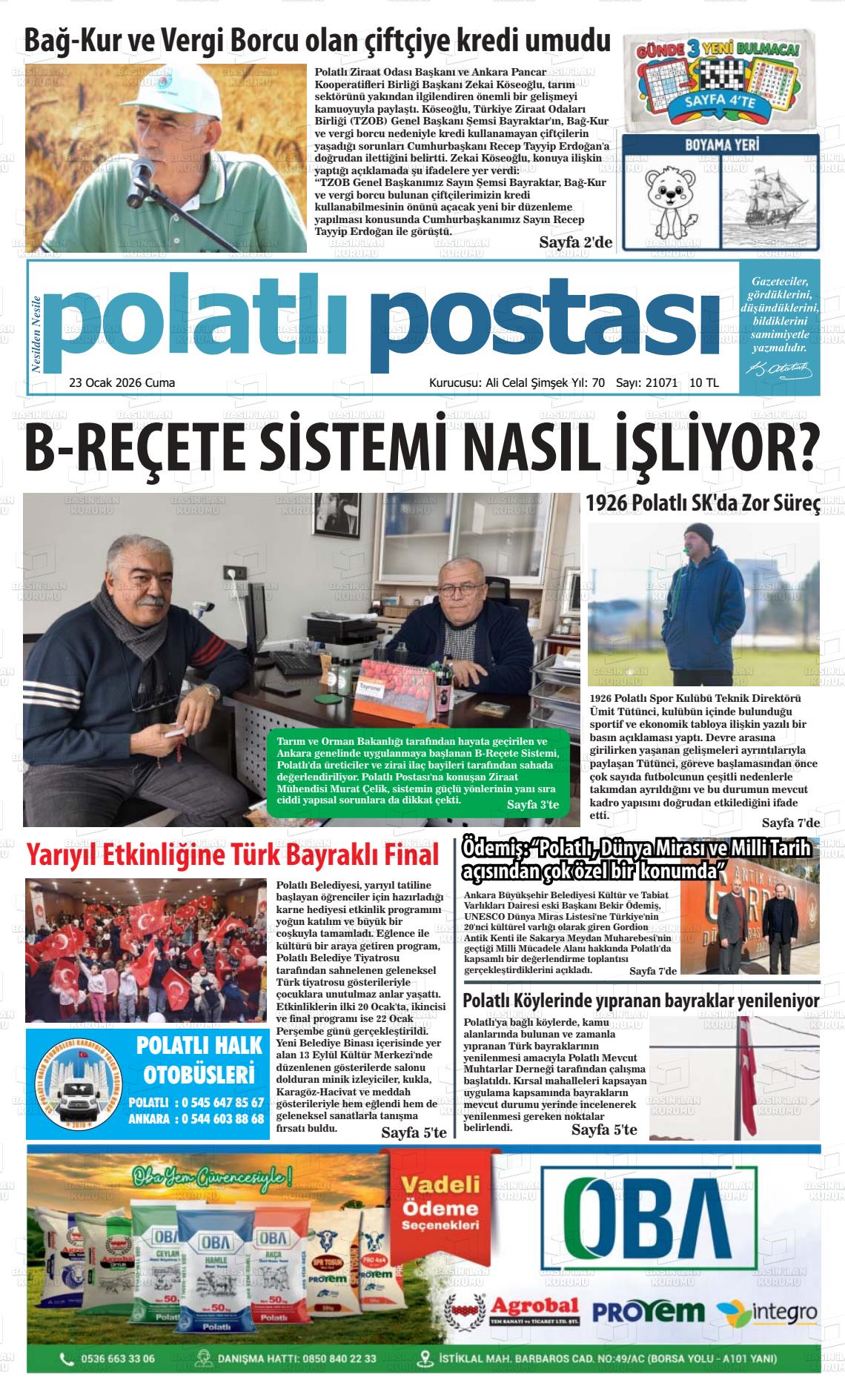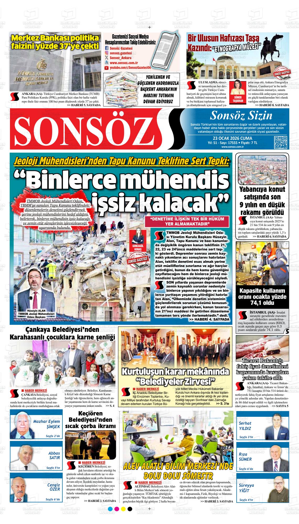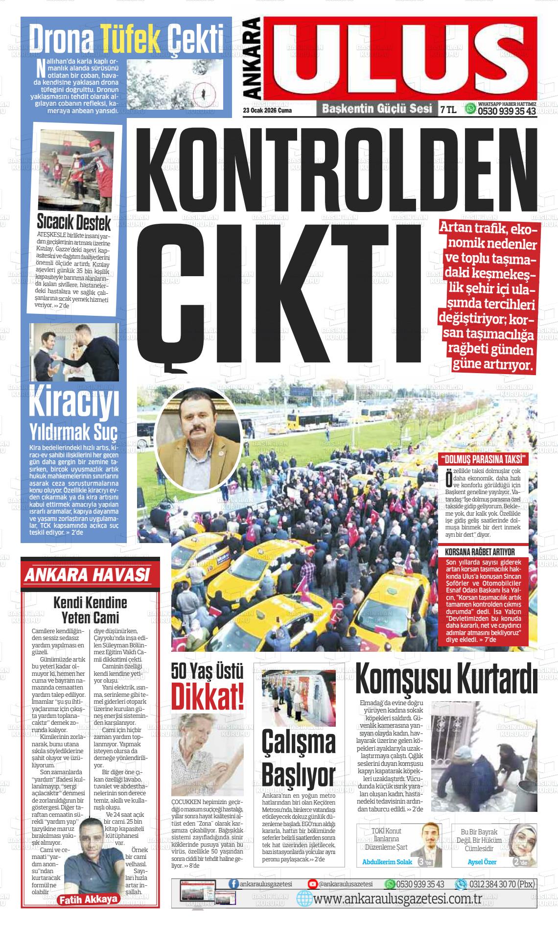 Ankara Yerel Gazeteleri 23 Ocak 2026, Cuma Günü Manşeti