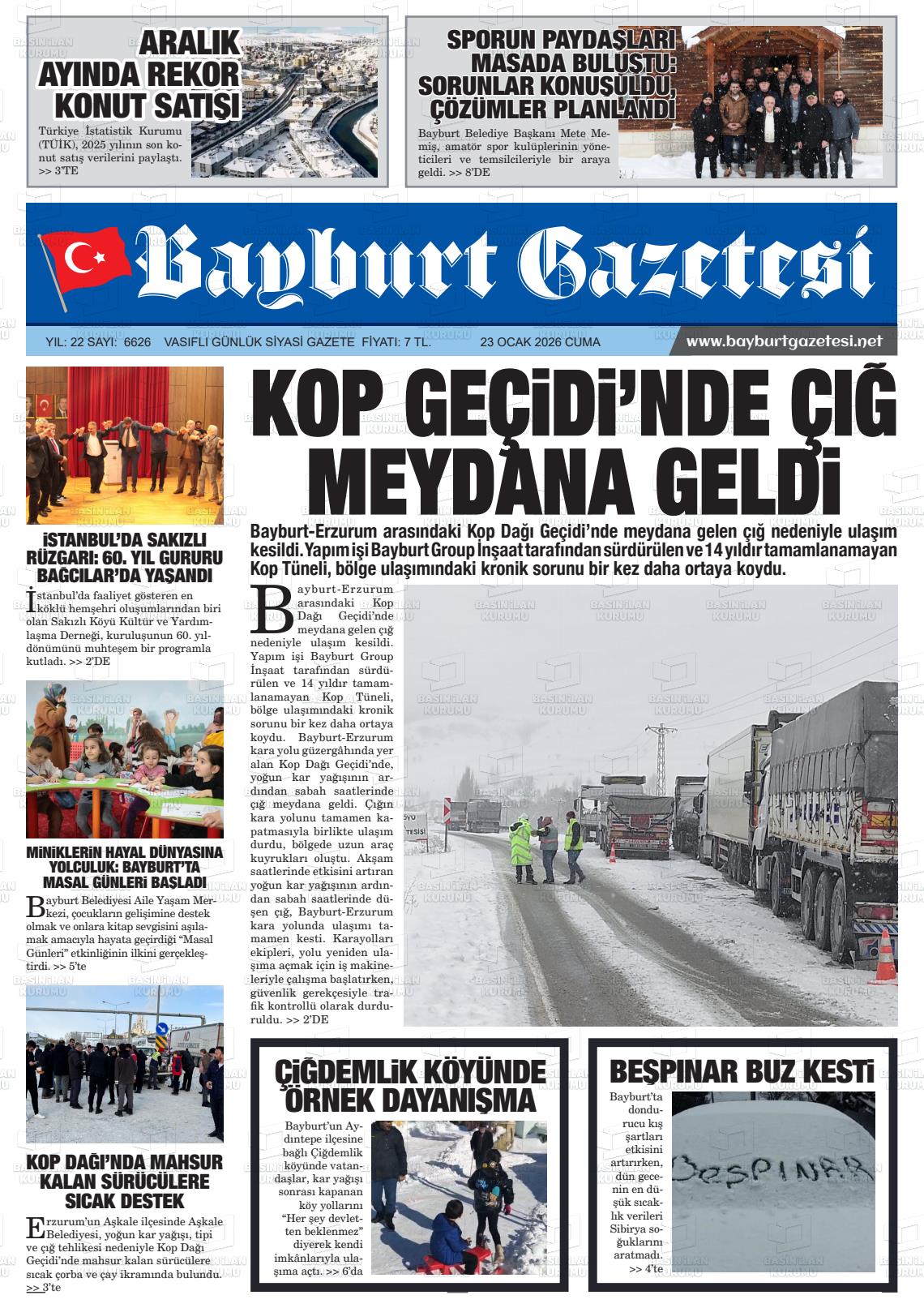 Bayburt Yerel Gazeteleri 23 Ocak 2026, Cuma Günü Manşeti