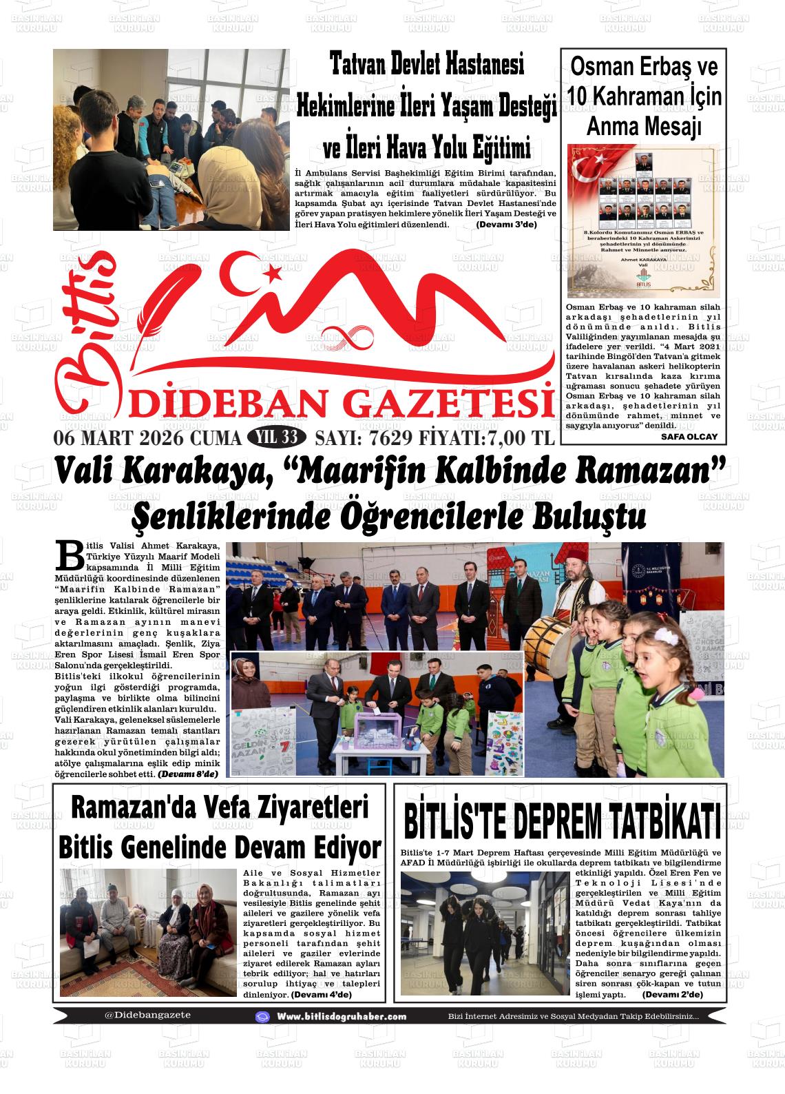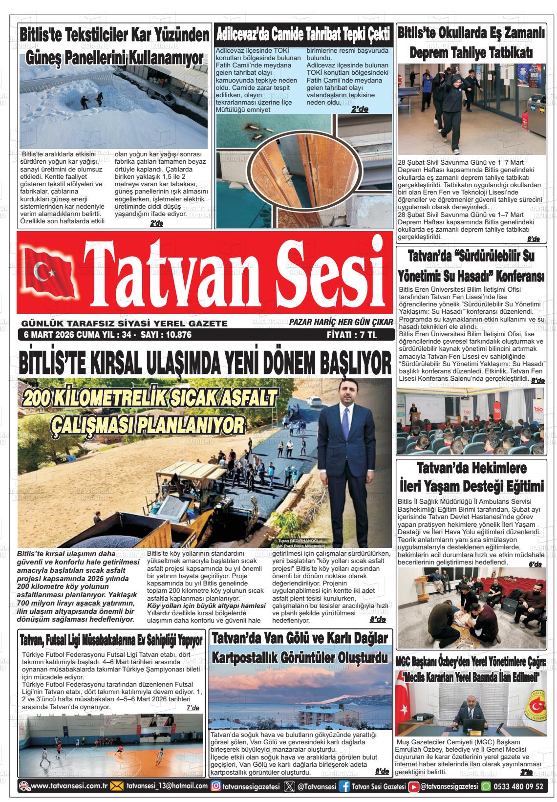 Bİtlİs Yerel Gazeteleri 07 Mart 2026, Cumartesi Günü Manşeti