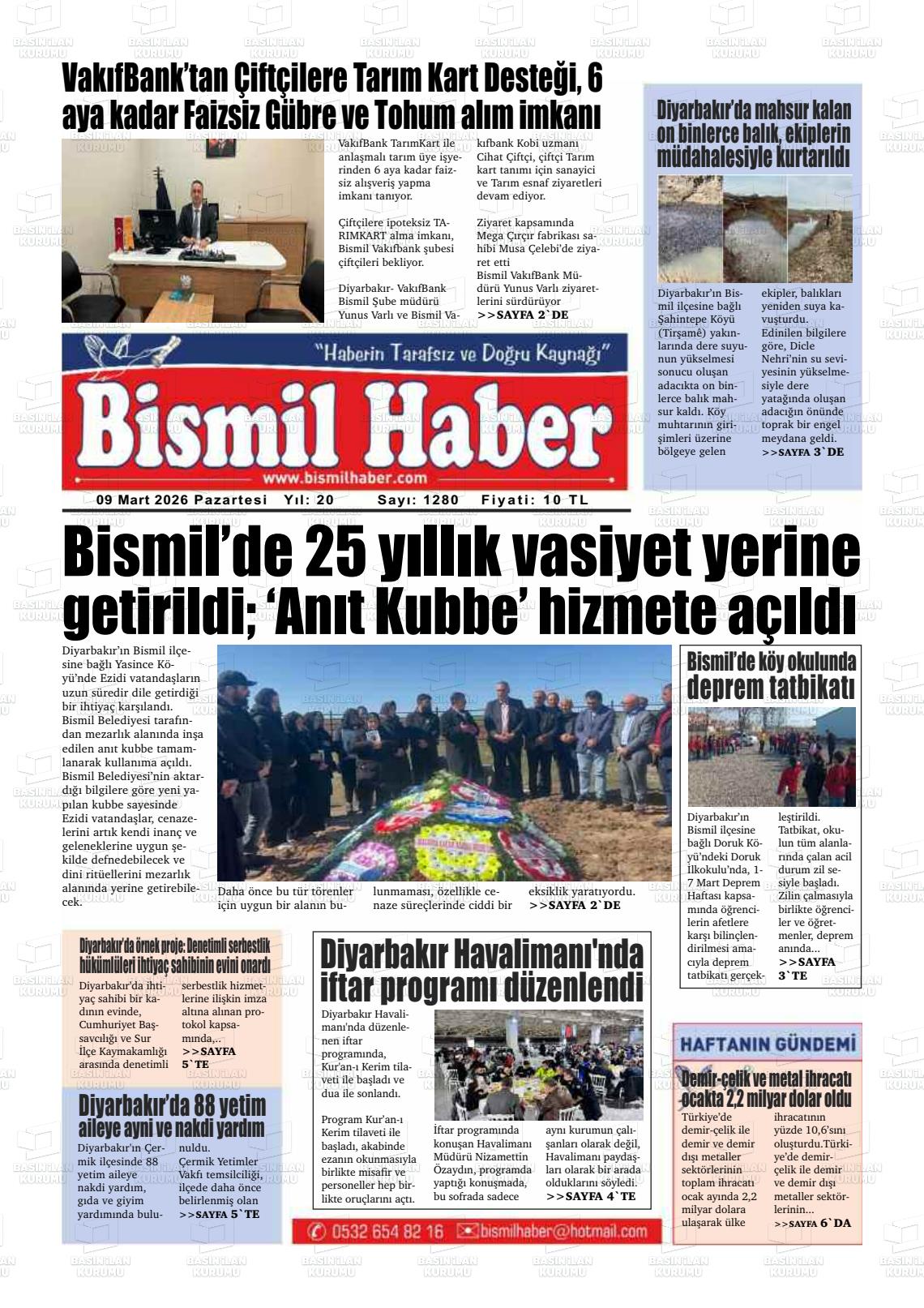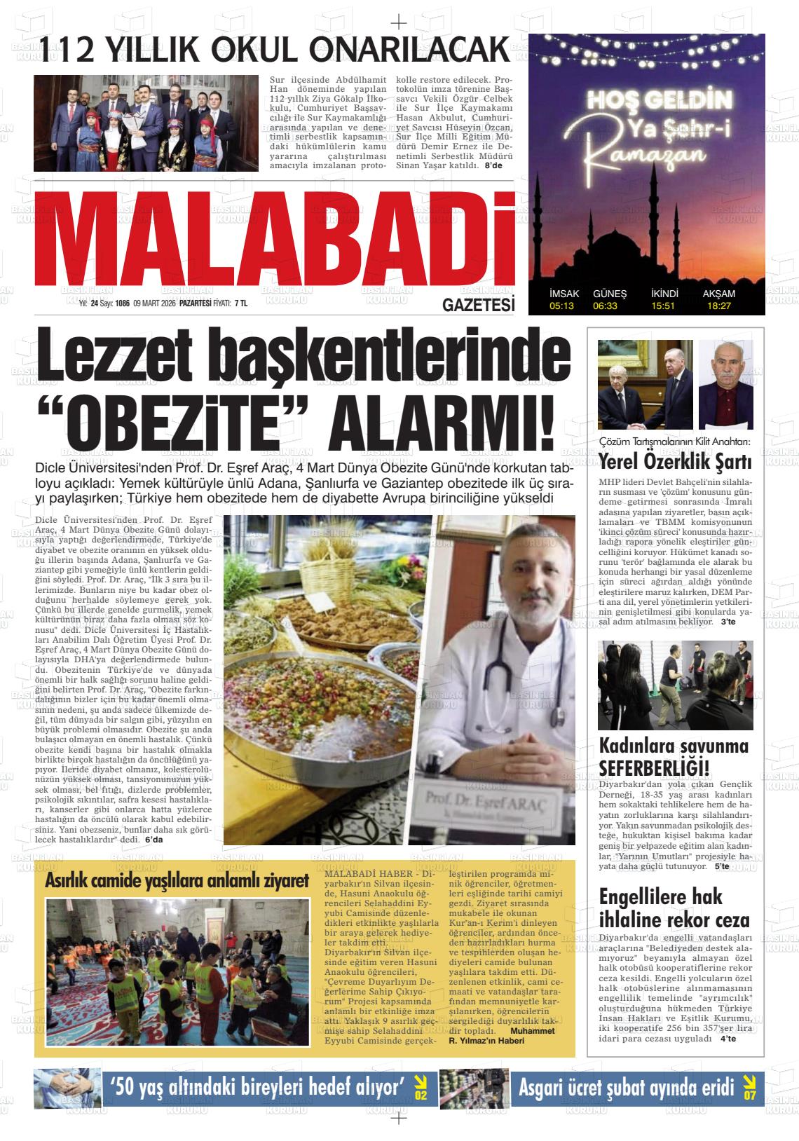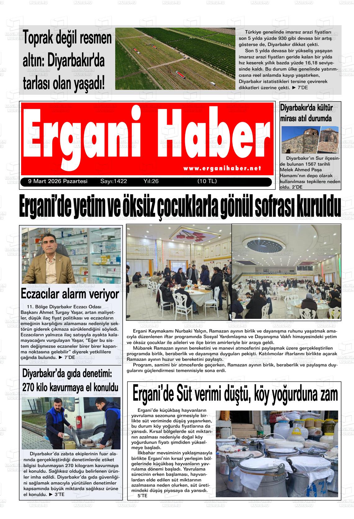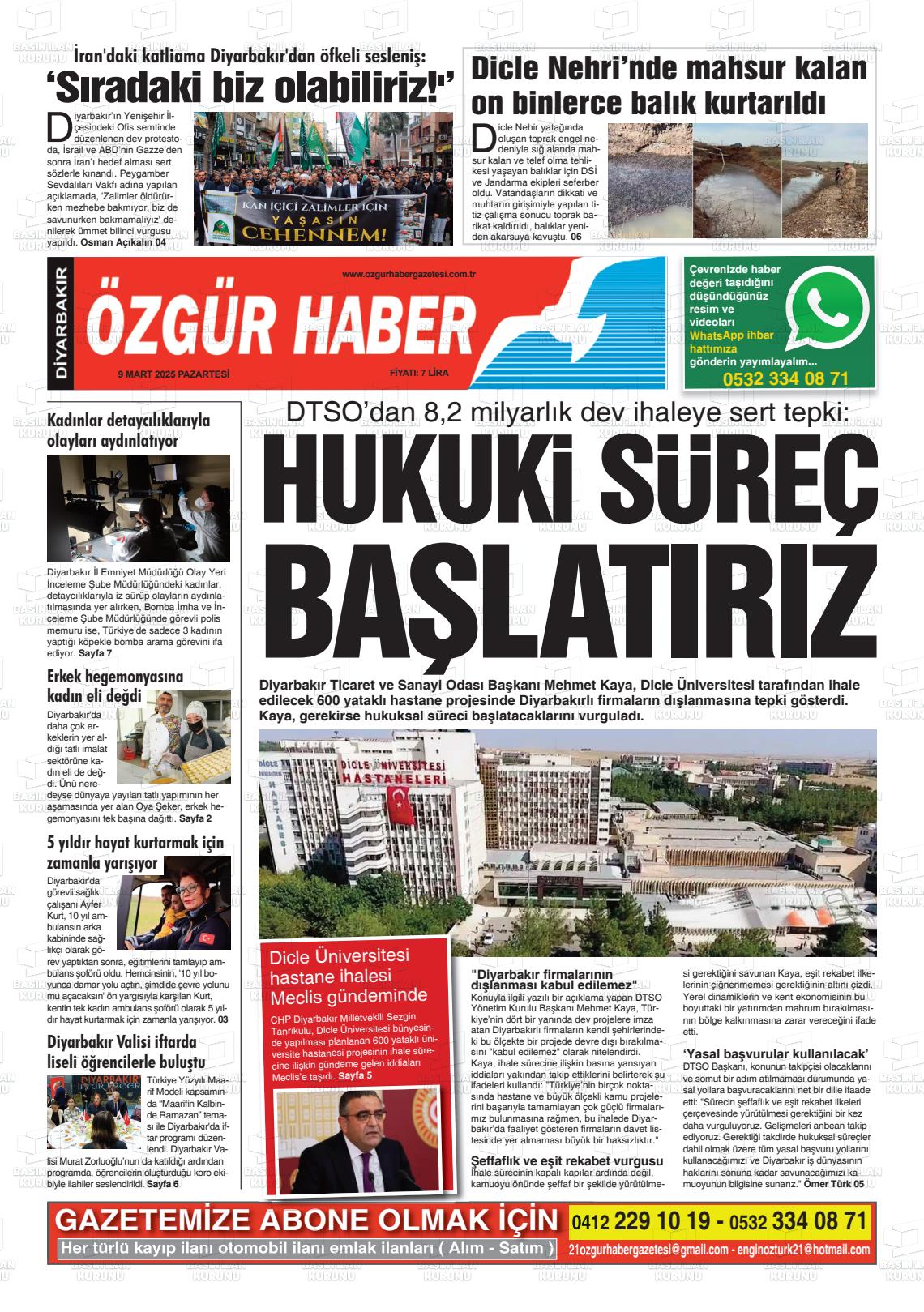 Dİyarbakır Yerel Gazeteleri 09 Mart 2026, Pazartesi Günü Manşeti