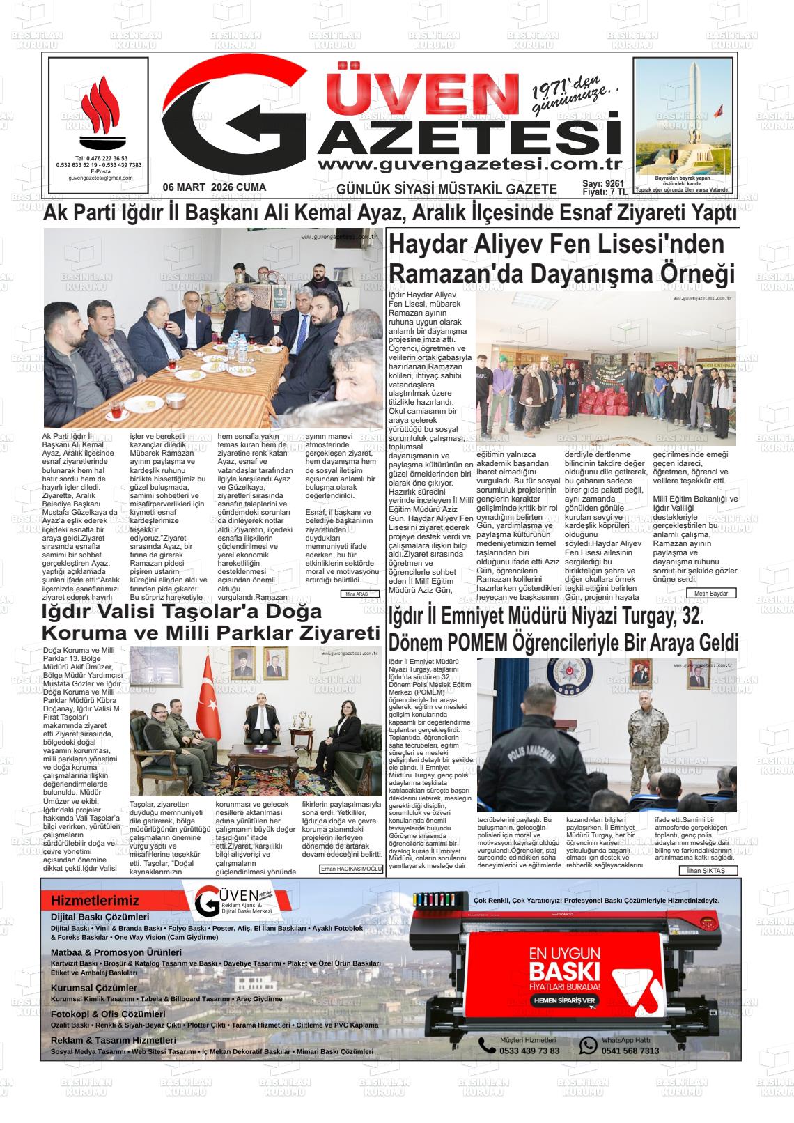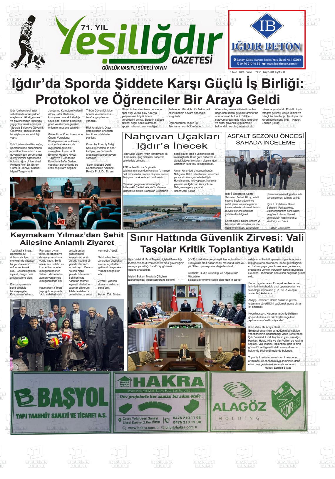 Iğdır Yerel Gazeteleri 07 Mart 2026, Cumartesi Günü Manşeti