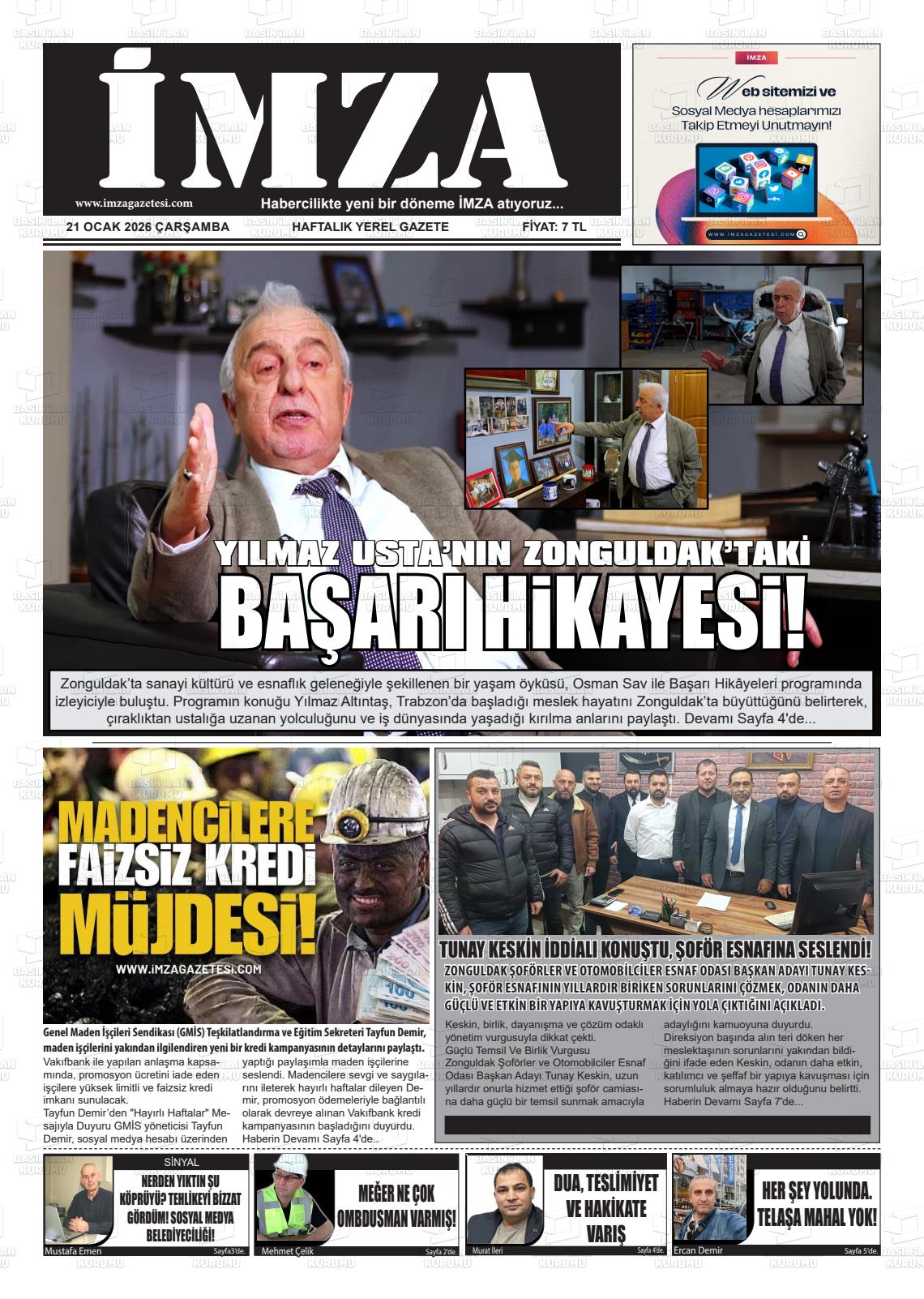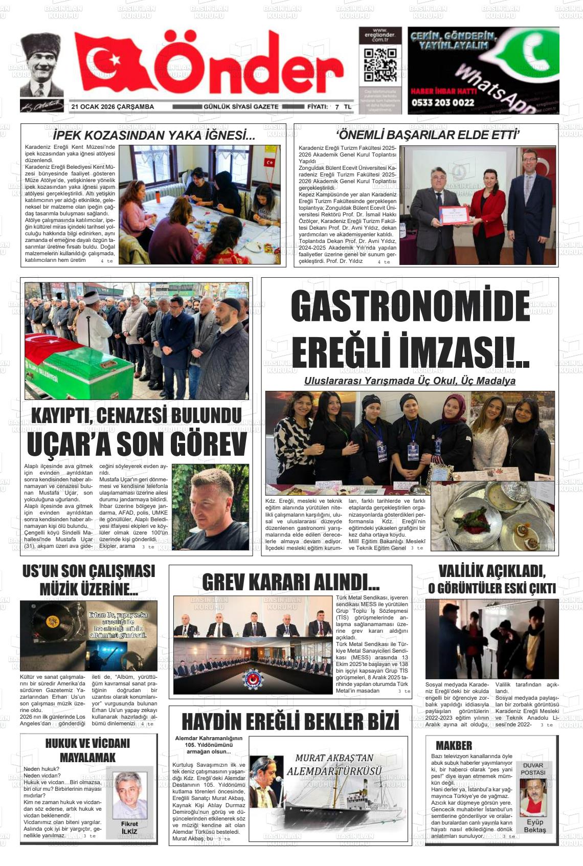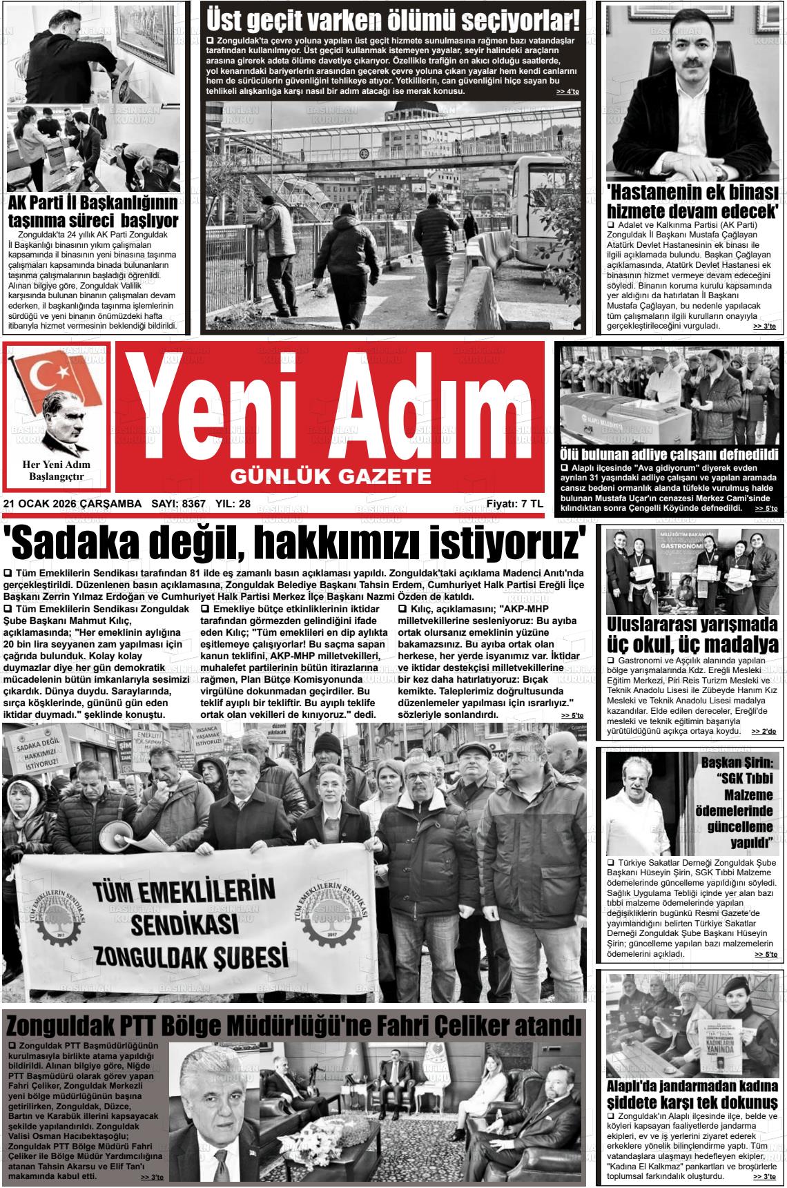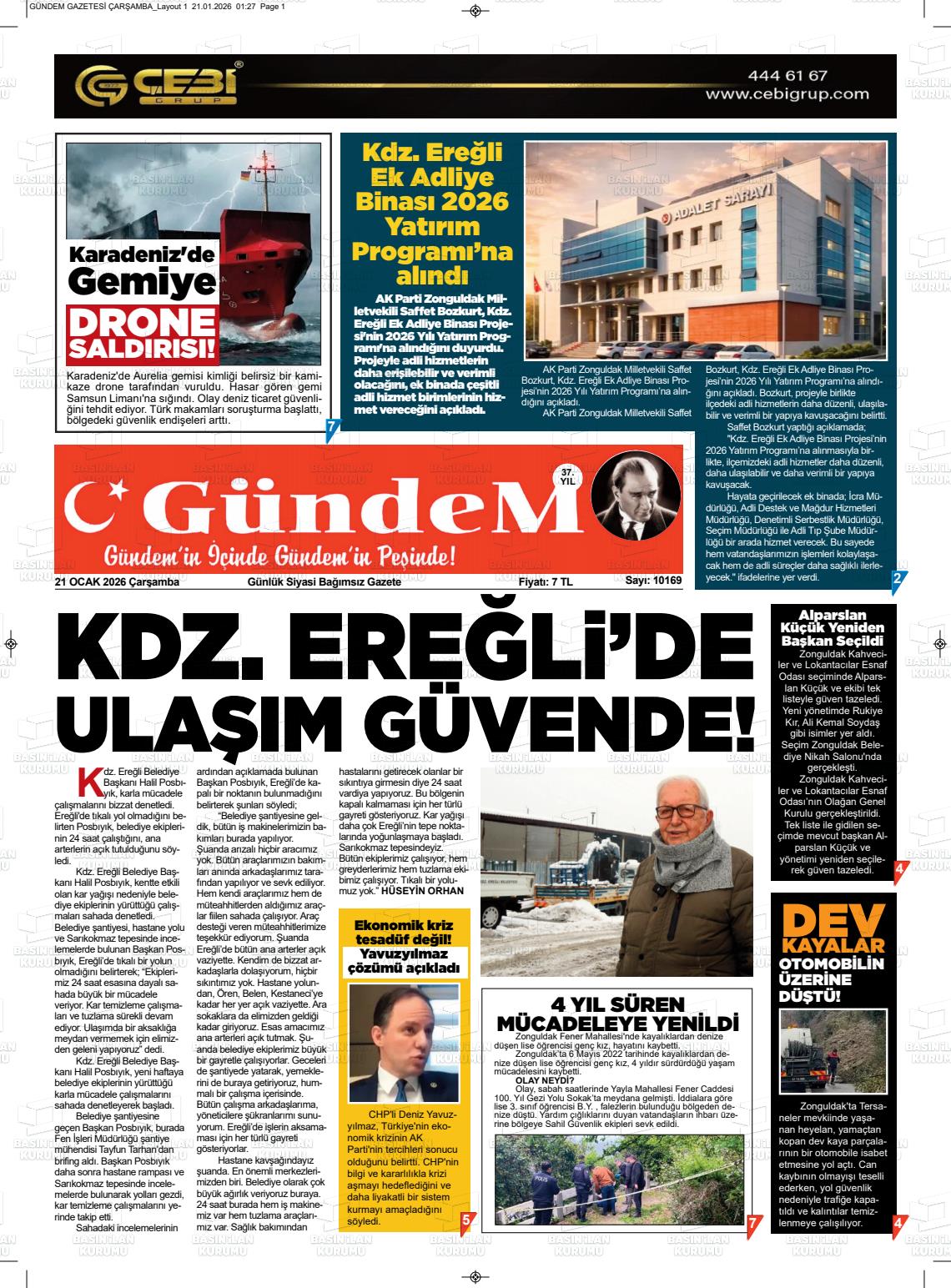 Zonguldak Yerel Gazeteleri 21 Ocak 2026, Çarşamba Günü Manşeti